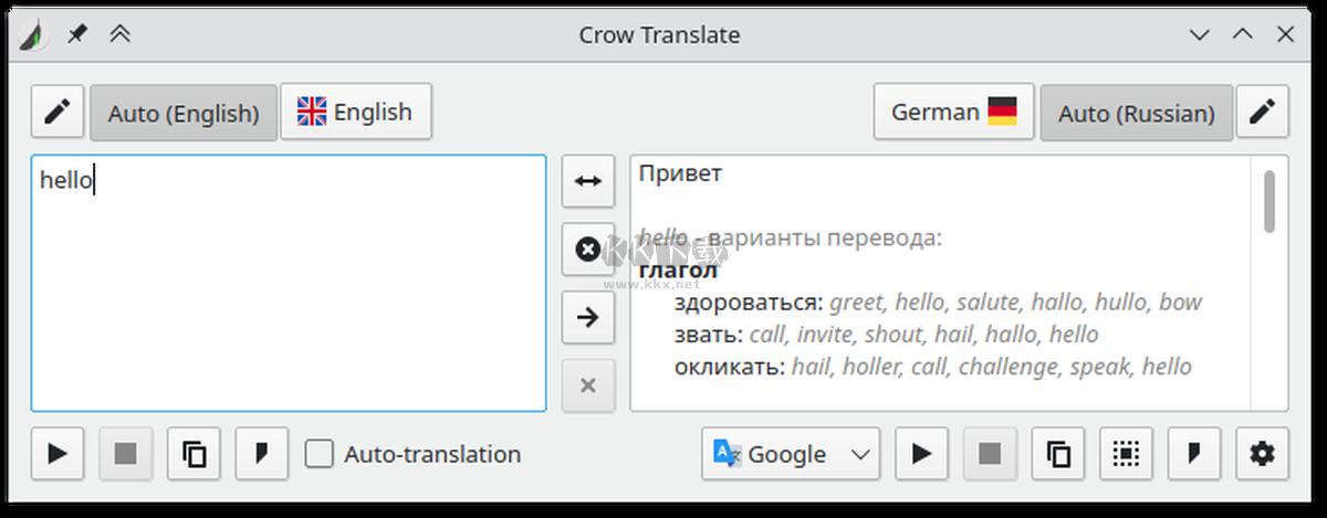 Crow Translate多語言翻譯工具是一款簡單輕量級的翻譯軟件,用戶們可以在Crow Translate多語言翻譯工具進行專門的語言學習和翻譯,Crow Translate多語言翻譯工具為大家提供了豐富的翻譯引擎,給你提供了準確的翻譯結(jié)果,你可以在Crow Translate多語言翻譯工具輕松的進行翻譯和朗讀文本,感興趣的用戶快來KK下載體驗吧~