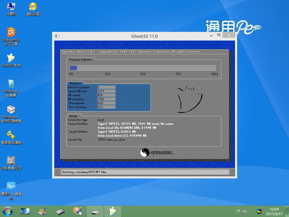 ⑤彈出GHO窗口,進度條到100會彈出提示,需耐心等待其完成即可,如下圖所示:
