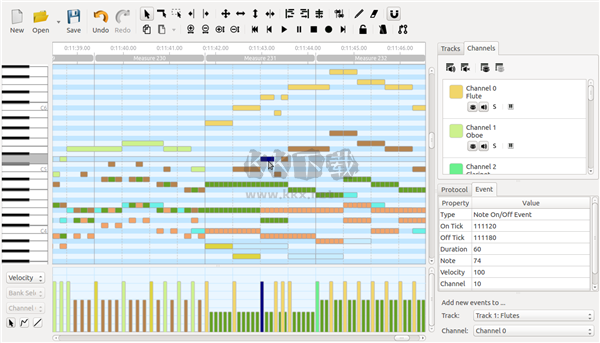 要定義分配給每個(gè)聲道的聲音(或樂器),可以使用程序更改事件。例如,將教堂管風(fēng)琴節(jié)目設(shè)置為頻道5后,頻道5上播放的所有音符都將與管風(fēng)琴的聲音一起播放。