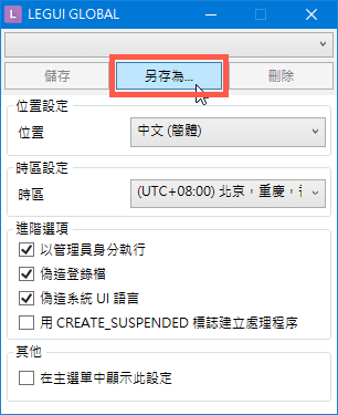 第3步:設(shè)定好之后按「另存爲….」按鈕,就可以將此設(shè)定儲存下來,日后可以直接按滑鼠右鍵選取不同語系來執(zhí)行軟體。