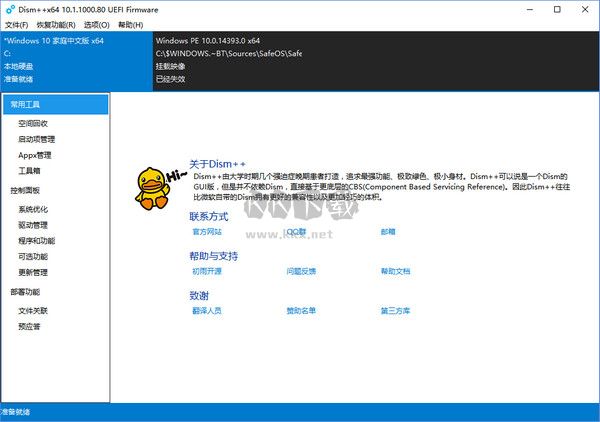 2.目前版本整合了Dism運行時(存放在Config),刪除Config文件夾可能導(dǎo)致低版本系統(tǒng)無法使用某些功能。