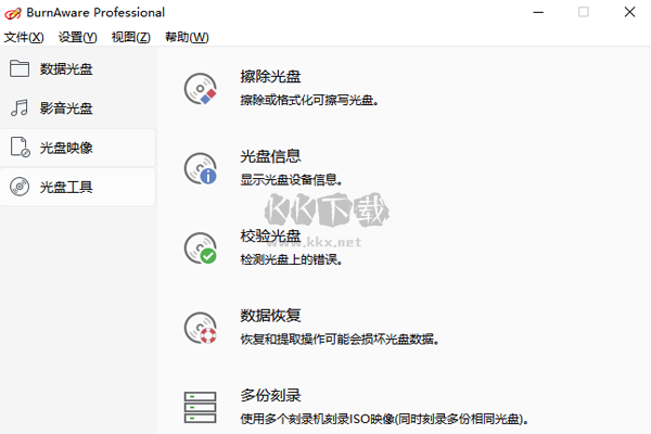 BurnAware Professional刻錄工具是一款功能全面得到光盤刻錄軟件,BurnAware Professional刻錄工具可以很好的幫助用戶們進行簡單的光盤制作,支持多種類型的光盤,幫助用戶們輕松的制作出你想要的效果,BurnAware Professional刻錄工具還為大家準備了數(shù)據(jù)恢復的功能,讓你的操作可以更加放心,感興趣的用戶快來KK下載體驗吧~