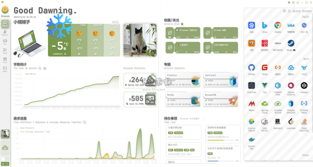 Blossom云端雙鏈筆記是一款擁有豐富功能的好用的筆記軟件,支持用戶們在自己的服務(wù)器當(dāng)中進行文檔的編輯,還能便捷的進行筆記圖片的保存,你可以在Blossom云端雙鏈筆記輕松的進行個人計劃的制定,支持用戶們在不同的設(shè)備之間使用,輕松的實現(xiàn)數(shù)據(jù)的同步,豐富的功能提供誒一個用戶們進行使用,給你提供高效的知識管理和播客分享體驗,感興趣的用戶快來KK下載體驗吧~