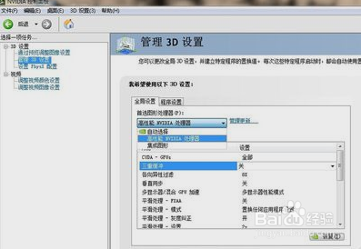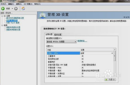 選中“管理3D設(shè)置”,“全局設(shè)置”,選擇“高性能NVIDIA處理器”。