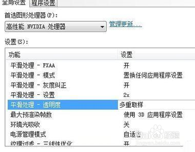 “平滑處理-模式”,該選項(xiàng)是選擇是否要在驅(qū)動(dòng)中強(qiáng)行控制游戲反鋸齒的。