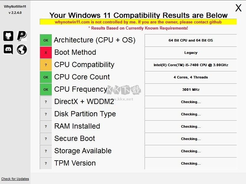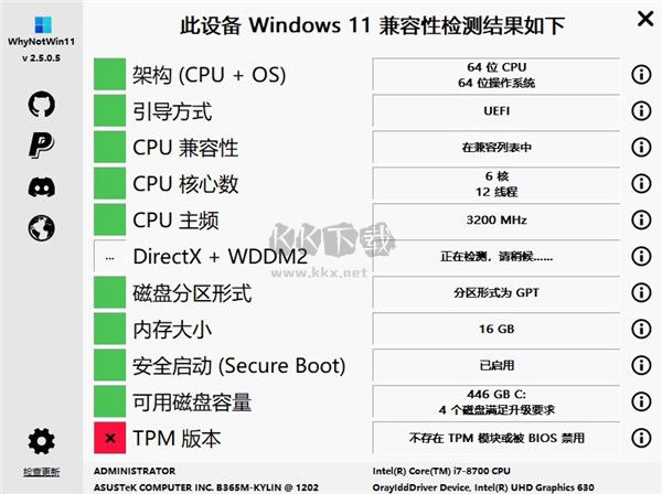 WhyNotWin11配置工具是一款非常強(qiáng)大好用的Win11升級(jí)檢測(cè)工具,用戶們可以在WhyNotWin11配置工具定期檢測(cè)系統(tǒng)是否存在更新和升級(jí)補(bǔ)丁,用戶們可以在WhyNotWin11配置工具輕松的進(jìn)行電腦的操作系統(tǒng)的更新,輕松的進(jìn)行系統(tǒng)的修復(fù)BUG,讓你可以擁有一個(gè)便捷的Win11安裝環(huán)境檢測(cè)工具,感興趣的用戶快來KK下載體驗(yàn)吧~