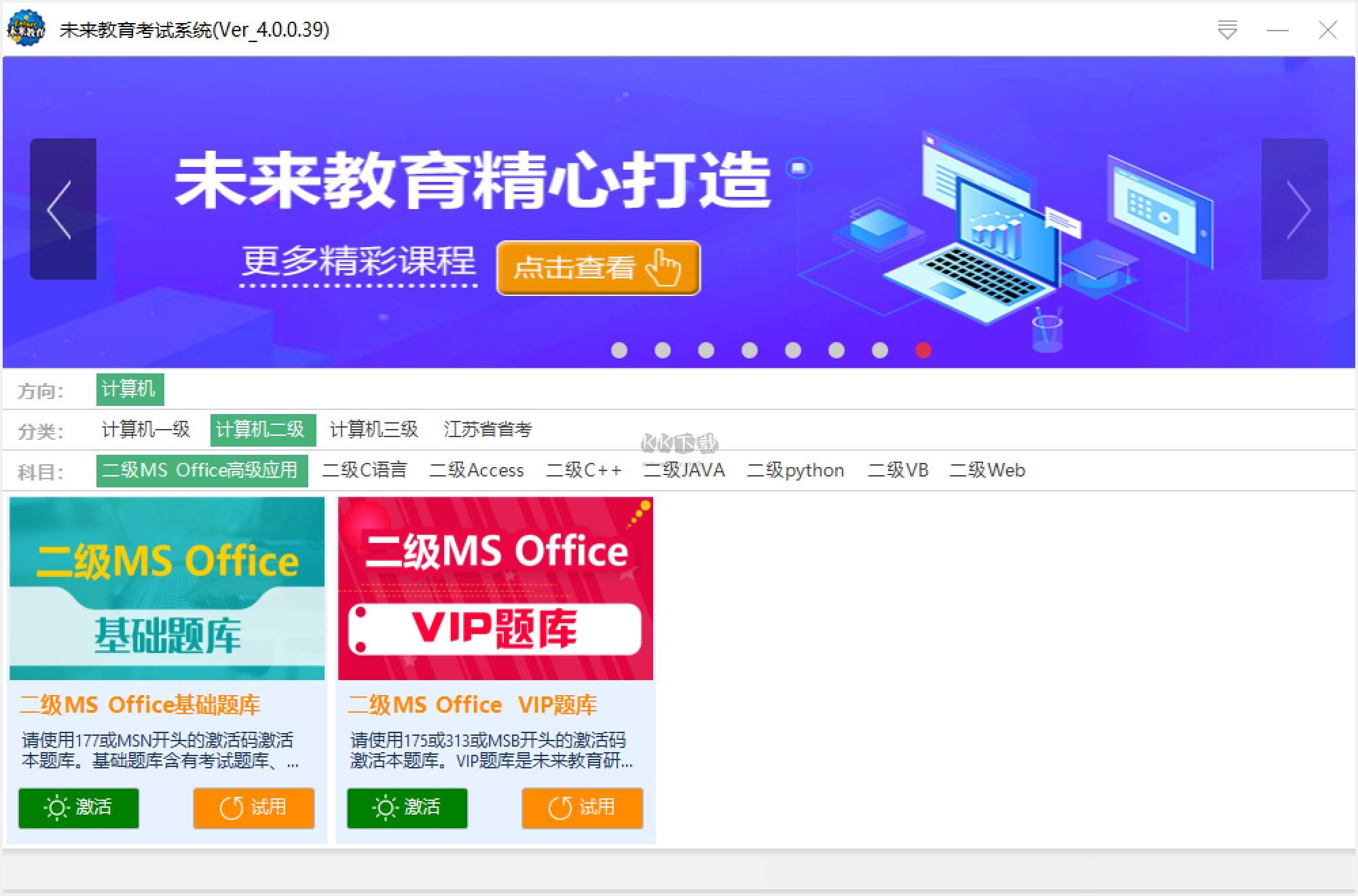 未來教育二級MS是一款專門為用戶們打造的計算機等級考試軟件,你可以在未來教育二級MS輕松的進行全方位的計算機模擬考試,未來教育二級MS擁有豐富的題庫提供給用戶們進行使用,你可以很好的提高自己的考試通過率,還能便捷的在線查看你的錯題進行錯題的反復(fù)練習(xí),提高自己的考試水平,感興趣的用戶快來KK下載體驗吧~