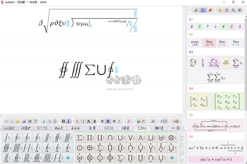 AxMath數(shù)學(xué)公式編輯器是一款給用戶們提供高效的數(shù)學(xué)公式編輯和排版的軟件,AxMath數(shù)學(xué)公式編輯器擁有豐富的數(shù)學(xué)符號(hào)和公式提供給用戶選擇使用,你可以高效的進(jìn)行公式的輸入和編輯,給你提供了多種格式的使用,還能將公式應(yīng)用到其他的文檔中來(lái)進(jìn)行使用喲,感興趣的用戶快來(lái)KK下載體驗(yàn)吧~
