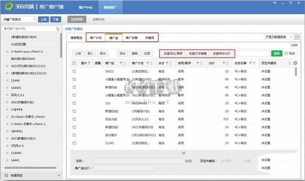 2)支持對產(chǎn)品線、推廣計劃、推廣組、推廣創(chuàng)意、關鍵詞層級進行批量編輯。