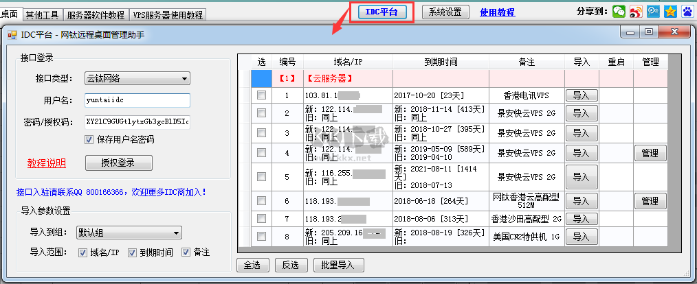 3.【IDC平臺(tái)】改寫接口登錄,增加【接口管理】按鈕,可以設(shè)置多個(gè)接口記錄,目前僅支持網(wǎng)鈦IDC系統(tǒng),希望更多IDC商加入進(jìn)來