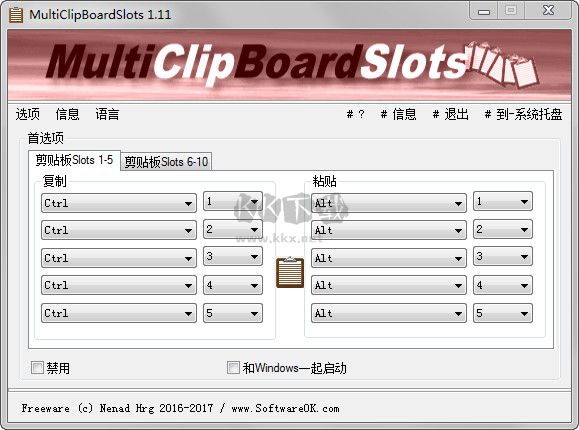 MultiClipBoardSlots快捷鍵工具是一款功能強(qiáng)大的系統(tǒng)修改軟件,你可以在這里即將你的系統(tǒng)的復(fù)制修改功能便捷的進(jìn)行設(shè)置,你可以在這里輕松的進(jìn)行復(fù)制修改的操作,你可以在這里便捷的進(jìn)行手法和內(nèi)容的設(shè)置,讓你可以更加輕松的進(jìn)行系統(tǒng)快捷鍵的設(shè)計(jì),便捷你的系列操作,感興趣的用戶快來KK下載體驗(yàn)吧~