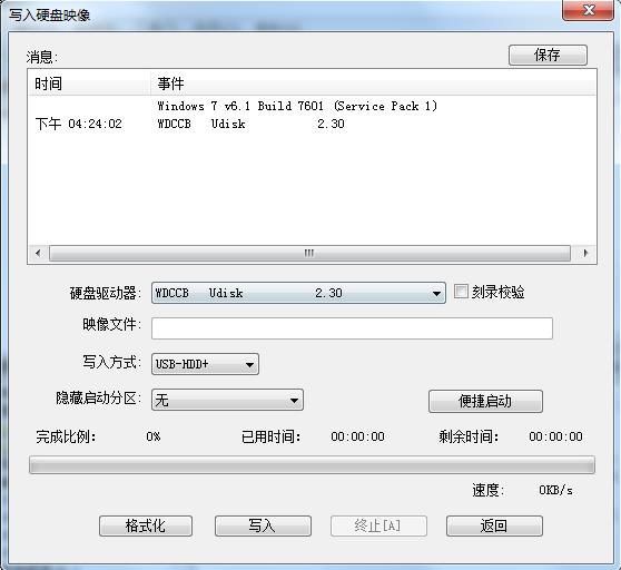 4、選擇U盤,點擊寫入,直到寫入100%完成就可以了