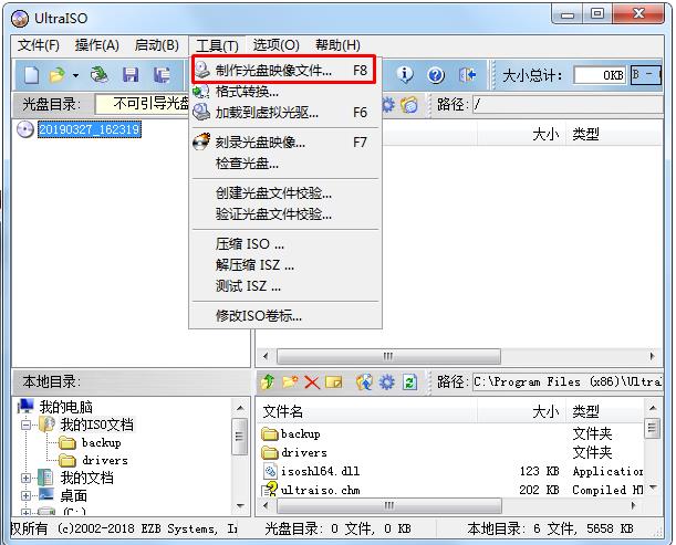 1、打開UltraISO程序,然后點擊【工具】——【制作光盤映像文件】;
