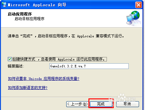勾選【創(chuàng)建快捷方式總是使用 AppLocale運行此應(yīng)用程序?!?,點擊【完成】即可。