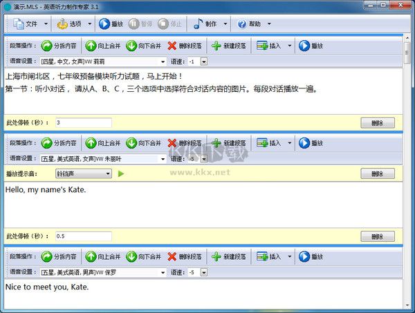 2、配套有中文、英文、日文、韓文等多種真人語(yǔ)音,是多種外語(yǔ)聽力資料的制作利器
