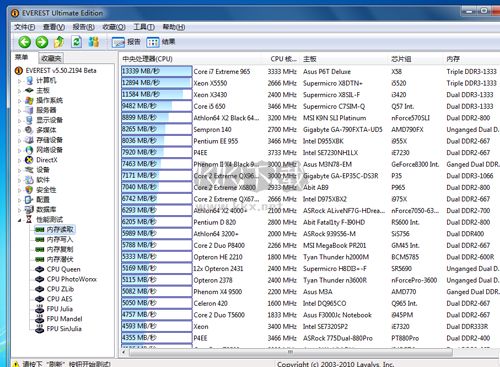 說一下用EVEREST Ultimate Edition檢測一下我們的計算機性能到底怎么樣,點擊菜單最下面的“性能測試”里面有內(nèi)存、CPU、FPU的相關(guān)測試。