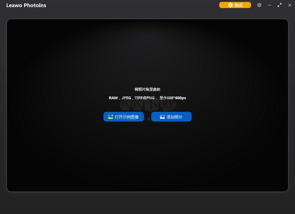 在您的計算機(jī)上啟動 Leawo PhotoIns。然后導(dǎo)航到軟件中的“添加照片”按鈕,將計算機(jī)文件夾中的源圖片添加到此 AI 照片增強(qiáng)器中。您還可以直接將源圖像拖放到工具中。