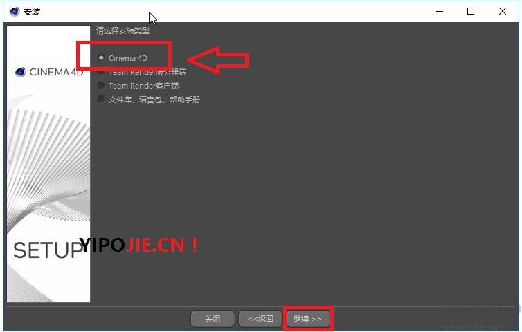 3.點選CINEMA 4D,點擊”繼續(xù)”