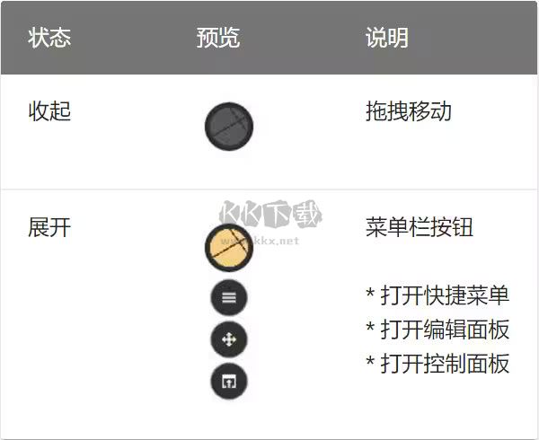 可隨意拖動(dòng),點(diǎn)擊可展開??旖輬D標(biāo)主要方便用戶快速切換模型、背景、特效等,無(wú)需打開控制面板。詳細(xì)請(qǐng)參考,主應(yīng)用,章節(jié)