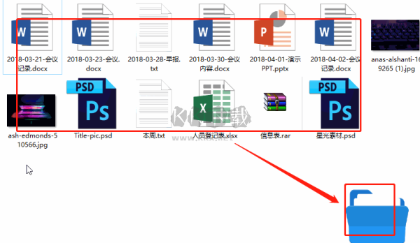 4.選中所有需要分類管理的文件,并將它們拖入到懸浮圖標