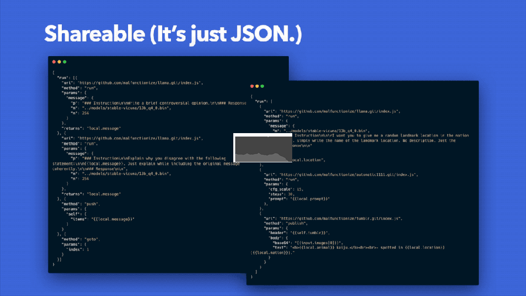 Pinokio 有一個(gè)用 JSON 編寫的原生腳本語言,擴(kuò)展了 JSON-RPC,這意味著任何可以表達(dá)為 API 的東西都可以用 Pinokio 腳本表達(dá)。
