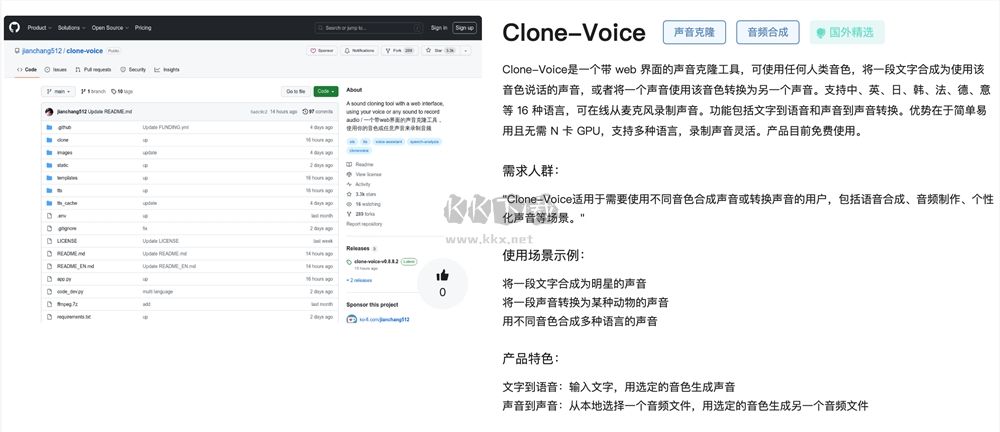 無論是為視頻項目配音、制作播客節(jié)目,還是創(chuàng)造具有獨特個性的聲音元素,Clone-Voice都能發(fā)揮重要作用,極大地豐富了聲音藝術(shù)的表現(xiàn)形式和應(yīng)用范圍。