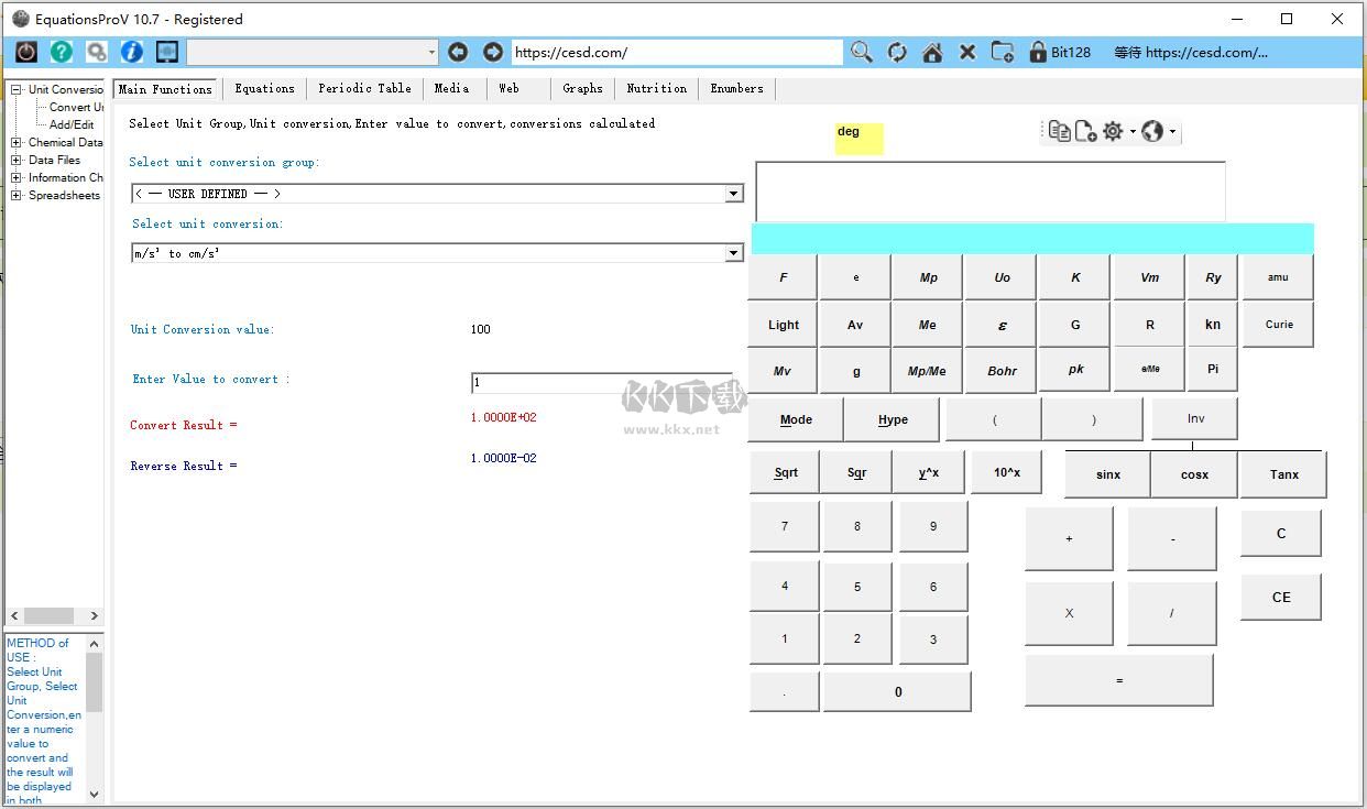 EquationsPro是一系列廣泛的工程工具,用于解決、告知、插入工程問題/方程。節(jié)省解決問題、執(zhí)行方程計算(即電學、物理、熱學、面積、體積等)、獲取數(shù)學/科學數(shù)據(jù)的時間。包括單位轉(zhuǎn)換,元素周期表,3000+數(shù)據(jù)化合物/元素/蒸汽表等,繪圖程序,媒體播放器界面,內(nèi)置網(wǎng)絡瀏覽器等。提高生產(chǎn)力,易于使用,所有數(shù)據(jù)信息都在一個應用程序中。適用于工程、科學專業(yè)人員、學生等。EquationsPro是ChemMaths的精簡版