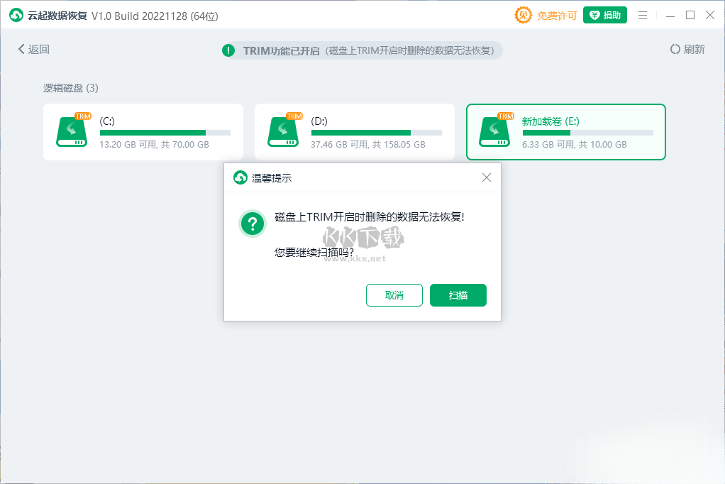 1、云起數(shù)據(jù)恢復(fù)軟件可以幫助用戶將錯(cuò)誤刪除的數(shù)據(jù)執(zhí)行恢復(fù)