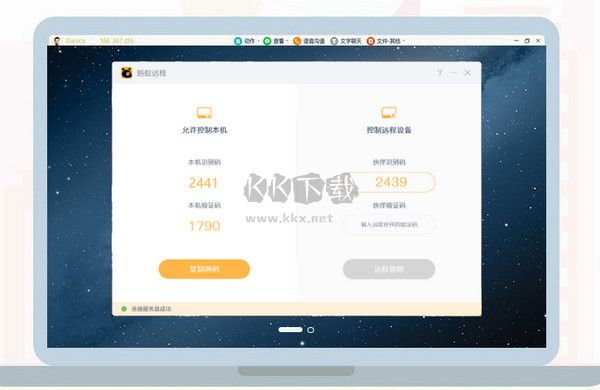 3、啟動軟件后可以看到有設備識別碼和驗證碼信息,在相同軟件上面輸入這些信息就可以進行遠程控制了。