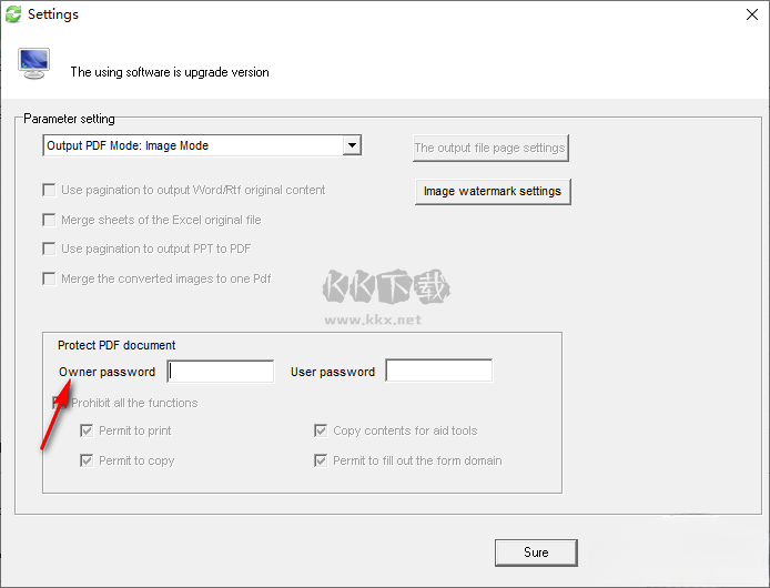4、支持密碼設置功能,可以設置所有者密碼,設置用戶密碼