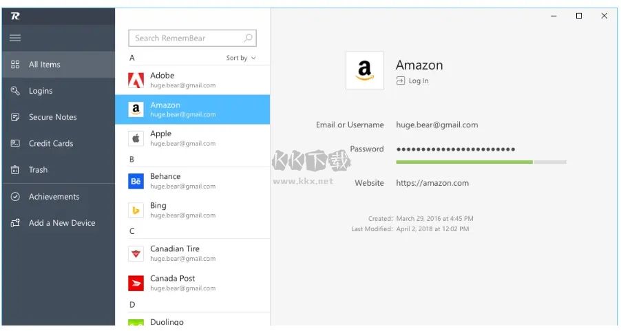 RememBear跨平臺密碼管理器是一款專門為用戶們設計的一款免費好用的額跨平臺密碼管理軟件,用戶們可以在這里便捷的將你的密碼進行同步管理,支持用戶們便捷的將你的密碼存儲在這里進行一鍵的密碼自動填寫功能,還能幫助用戶們自動的生成隨機密碼,你不用思考該怎么組合密碼來進行使用,很好的保護你的密碼安全,感興趣的用戶快來KK下載體驗吧~
