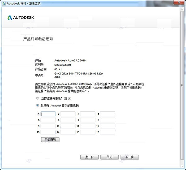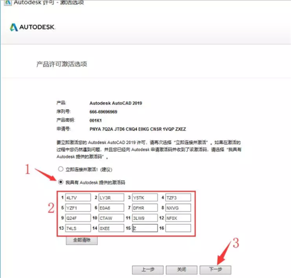 16、復制上一步的激活碼至我具有autodesk提供的激活碼框中,點下一步;