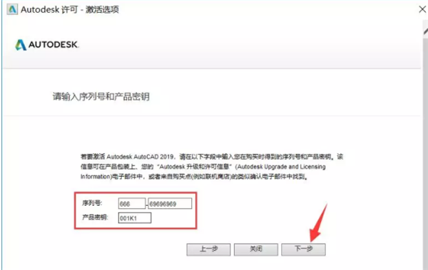 11、輸入序列號:666-69696969,產(chǎn)品密鑰:001K1,點擊下一步;