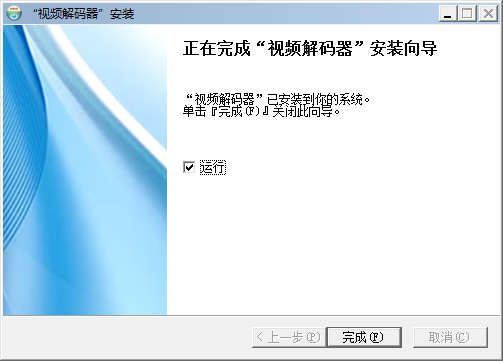 8、視頻解碼器安裝完成,我們直接單擊【完成】按鈕關閉該界面即可。如果你想安裝完直接運行視頻解碼器,請先勾選“運行”選項再選擇【完成】。