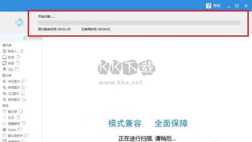 2、軟件開始掃描之后就會開始對手機里面的數(shù)據(jù)進行掃描,然后等待軟件的掃描完成就可以在軟件的界面上看到已經(jīng)掃描出來的數(shù)據(jù)了,掃描的時間長度跟手機里面數(shù)據(jù)有關(guān)系,也就是手機數(shù)據(jù)越多掃描時間越長。