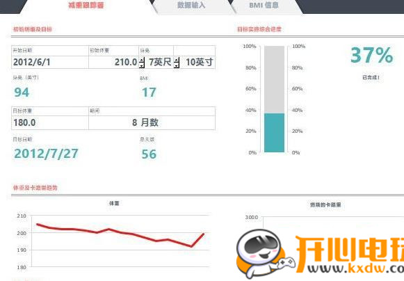 對(duì)于想要減肥的用戶來(lái)說(shuō),這個(gè)表格就是專(zhuān)為督促你而生的。整個(gè)表格由統(tǒng)計(jì)圖、錄入?yún)^(qū)、BMI信息區(qū)三部分組成,各種指標(biāo)還有曲線圖都準(zhǔn)備好了,想要圖形變得好看,那就就加油!
