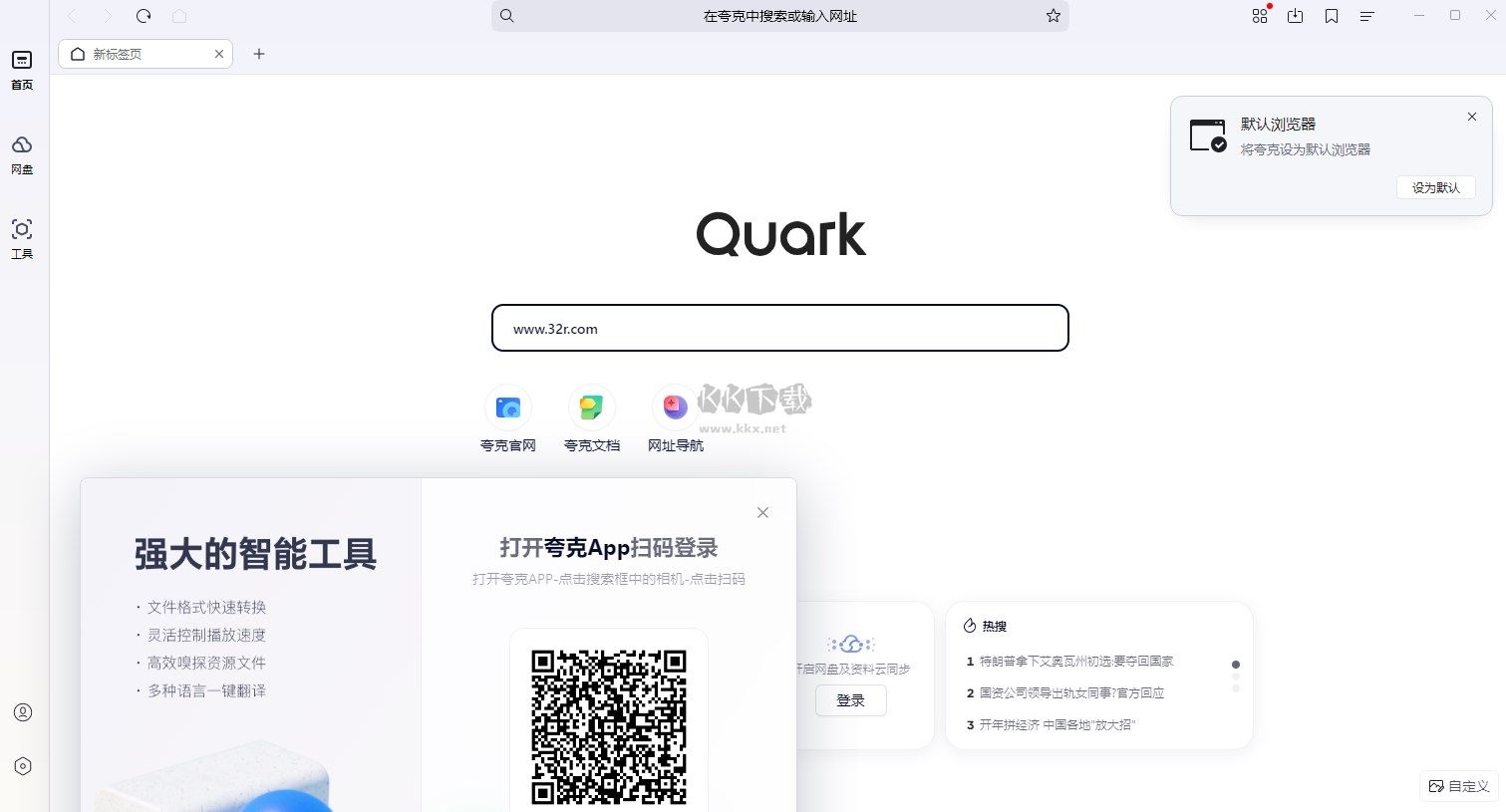 以左側(cè)邊欄一級入口設(shè)計,集成網(wǎng)盤和工具,與傳統(tǒng)PC瀏覽器有所不同,提供全新的界面風(fēng)格。