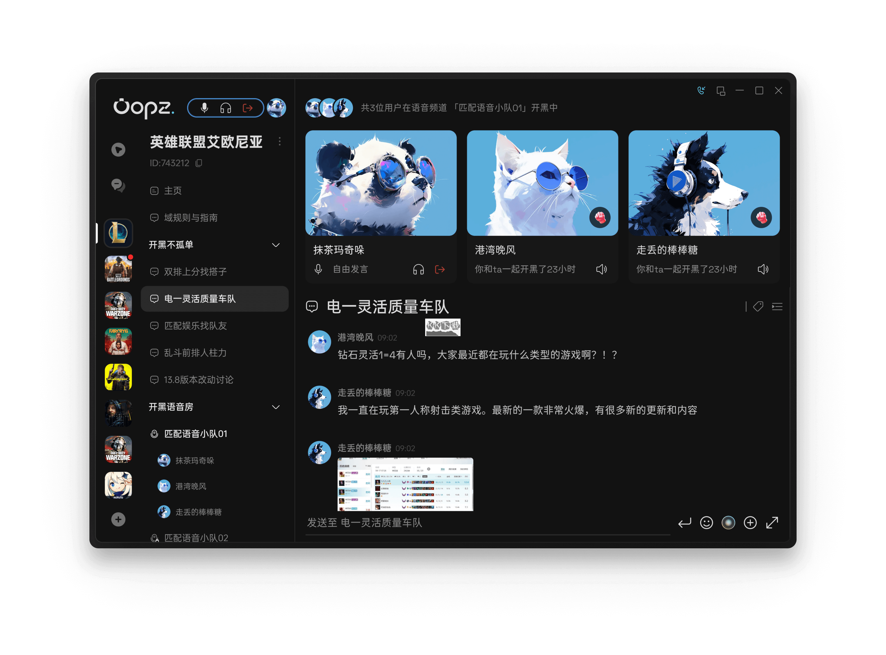 oopz(語音溝通)是一款專為玩家而生的實時語音溝通工具,語音讓游戲變得更有趣。軟件注重增加游戲語音的趣味性,為語音頻道內的玩家提供更多交互方式。它不僅是一款工具,更是一個游戲社交的全新平臺。重新定義游戲社交體驗,讓用戶在虛擬世界中享受暢快溝通、深度交友的樂趣。感興趣的玩家趕緊來本站下載。