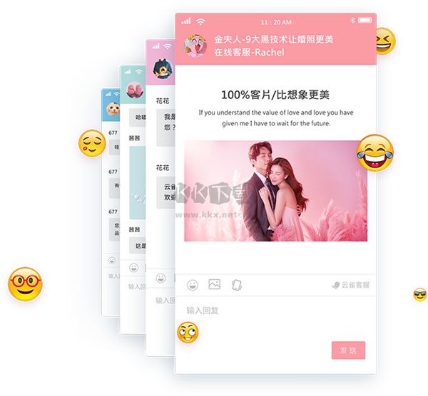 云雀隨心定制的對話界面,更加貼合您的品牌,有趣的對話表情,和客戶零距離。