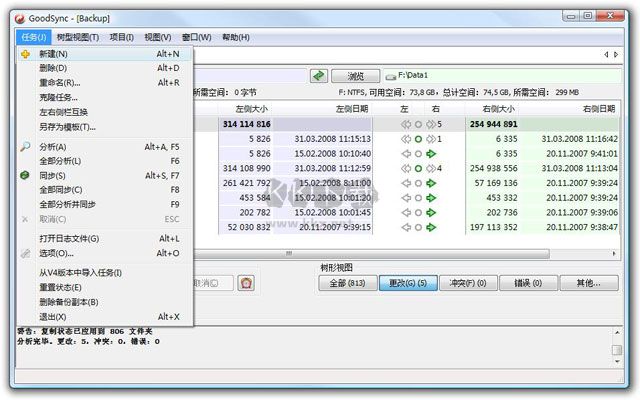 1、啟動 GoodSync 之后,選擇 任務 》 新建。