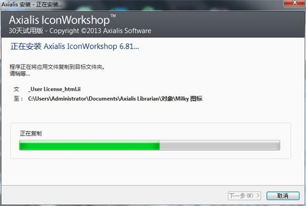 6、選擇軟件的安裝路徑,默認路徑為C:\Program Files (x86)\Axialis\IconWorkshop,可更改或直接點擊瀏覽更換路徑,完成點擊下一步
