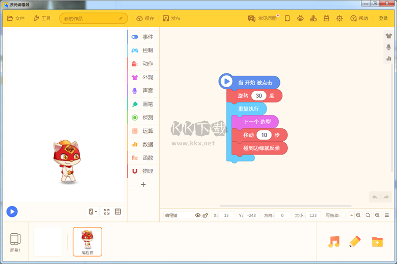 2、源碼編輯器最新版與編程貓一樣內(nèi)置了圖形化編程,引起學(xué)生學(xué)習(xí)興趣;