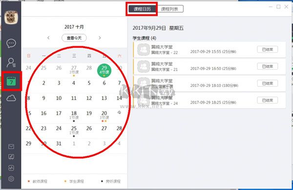 在左側(cè)功能欄中選擇【課程】,可查看目前已加入班級的全部課程,以日歷形式標注清晰明了。