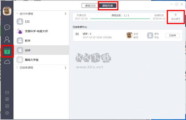 老師在【課程】中選擇【課程列表】,可添加課節(jié),方便快速開課。
