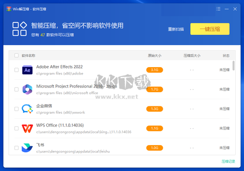 還有獨(dú)家的軟件壓縮功能,可以將大型的軟件,如:3D max、Photo shop、等,可壓縮他們的體積,減少系統(tǒng)空間占用,并不影響軟件運(yùn)行