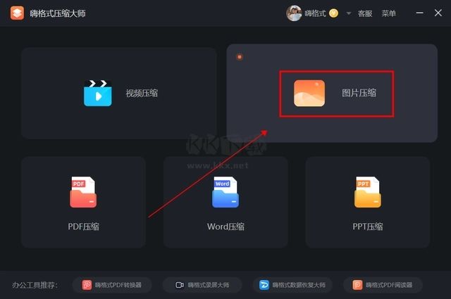 1、在電腦上運(yùn)行嗨格式壓縮大師,這個(gè)軟件可以壓縮png、jpg、jpeg、jpe、bmp、tif和tiff多種格式的照片,打開(kāi)后點(diǎn)擊首界面中的【圖片壓縮】功能。