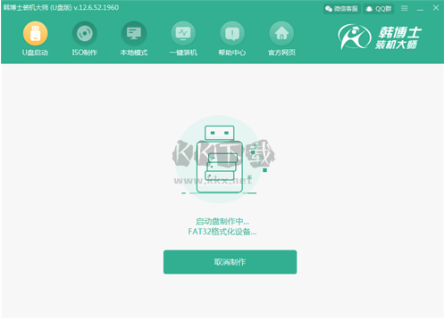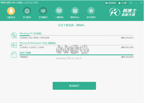 下載并制作啟動(dòng)盤。韓博士裝機(jī)大師會(huì)自動(dòng)下載所選系統(tǒng)并開始制作啟動(dòng)U盤。