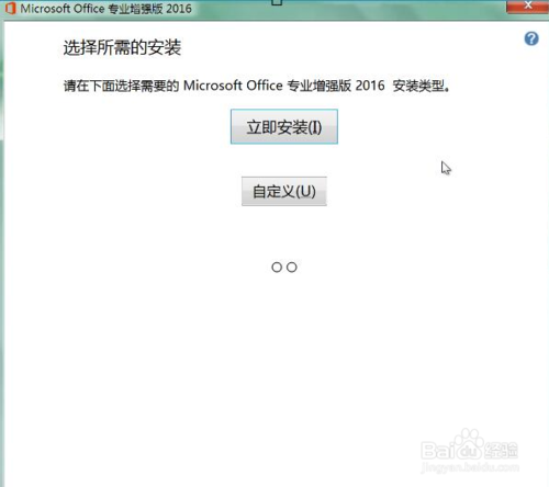點擊“立即安裝”,就是按默認(rèn)安裝,如果你想修改安裝的路徑,或者不想安裝Office2016全套組件,只想安裝里面的某幾個組件,比如excel組件,你可以點擊“自定義”進行設(shè)置