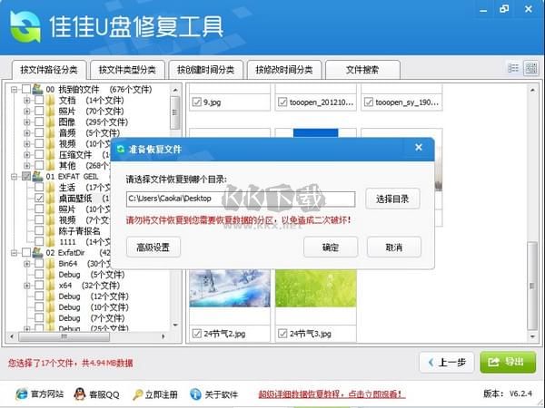第四步、選擇導(dǎo)出目錄,點擊"確定"按鈕,恢復(fù)成功!