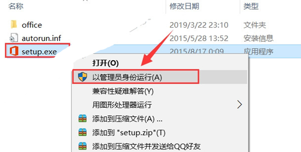 4.選中【setup】可執(zhí)行文件,鼠標(biāo)右擊選擇【以管理員身份運(yùn)行】。